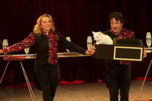 Mit einer erstklassigen Hauskatzen-Dressur komplettiert Miss Fatima den Reigen der Darbietungen mit tierischer Beteiligung. Zu Beginn des erstklassig gestalteten Auftritts wird die erste Katze aus einer „leeren“ Schachtel in die Manege gezaubert. Die Stubentiger zeigen Balken- und Flaschenlauf, durchspringen Reifen und überspringen kleine, auf dem Manegenboden stehende Hürden. Sie kreuzen der Vorführerin beim gehen durch die Beine und nutzen die Vorführer als Sprungpodeste.