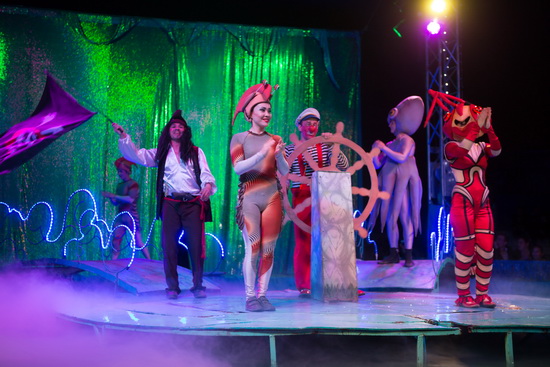 Nachdem in der Pause die Wassermanege installiert und geflutet wurde, beginnt der zweite Teil des Programms mit einem großen revuehaften Schaubild. „Steuermann“ Tomasz Kolosko steht am Ruder und Kapitän „Jack Sparrow“, alias Carlos Savadra erobert mit der Piratenflagge in der Hand das weite Rund. Sämtliche Artisten tanzen in phantasievollen Kostümen, die nach Motiven des Films „Nemo“ gestaltet sind“ auf der Piste, während die verschiedenen Fontänen des Wasserballetts in die Kuppel empor steigen.