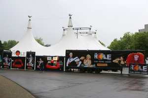 Die schneeweißen Zeltanlagen sind auf einem Parkplatz der Köln Messe aufgebaut. Das Cabaret-Zelt, ein großes Vier-Masten-Chapiteau ist mit einem optisch passenden Foyerzelt kombiniert. Zwei Sattelzüge, die mit Spannbändern, die Akteure der Show zeigen, dekoriert sind, bilden die Front des Unternehmens. In einem in gleicher Weise gestalteten Container ist die Kasse untergebracht. Ein zweiflügeliges schwarzes Tor, es ist mit einem überdimensionalen Kussmund – dem markanten Logo der Show - geschmückt, gewährt Einlass in die Zeltanlagen. Die übrigen Seiten des Geländes sind mit einem hohen Zaun, der komplett mit Spannbändern versehen ist, umgeben.