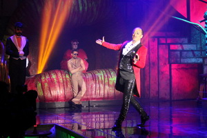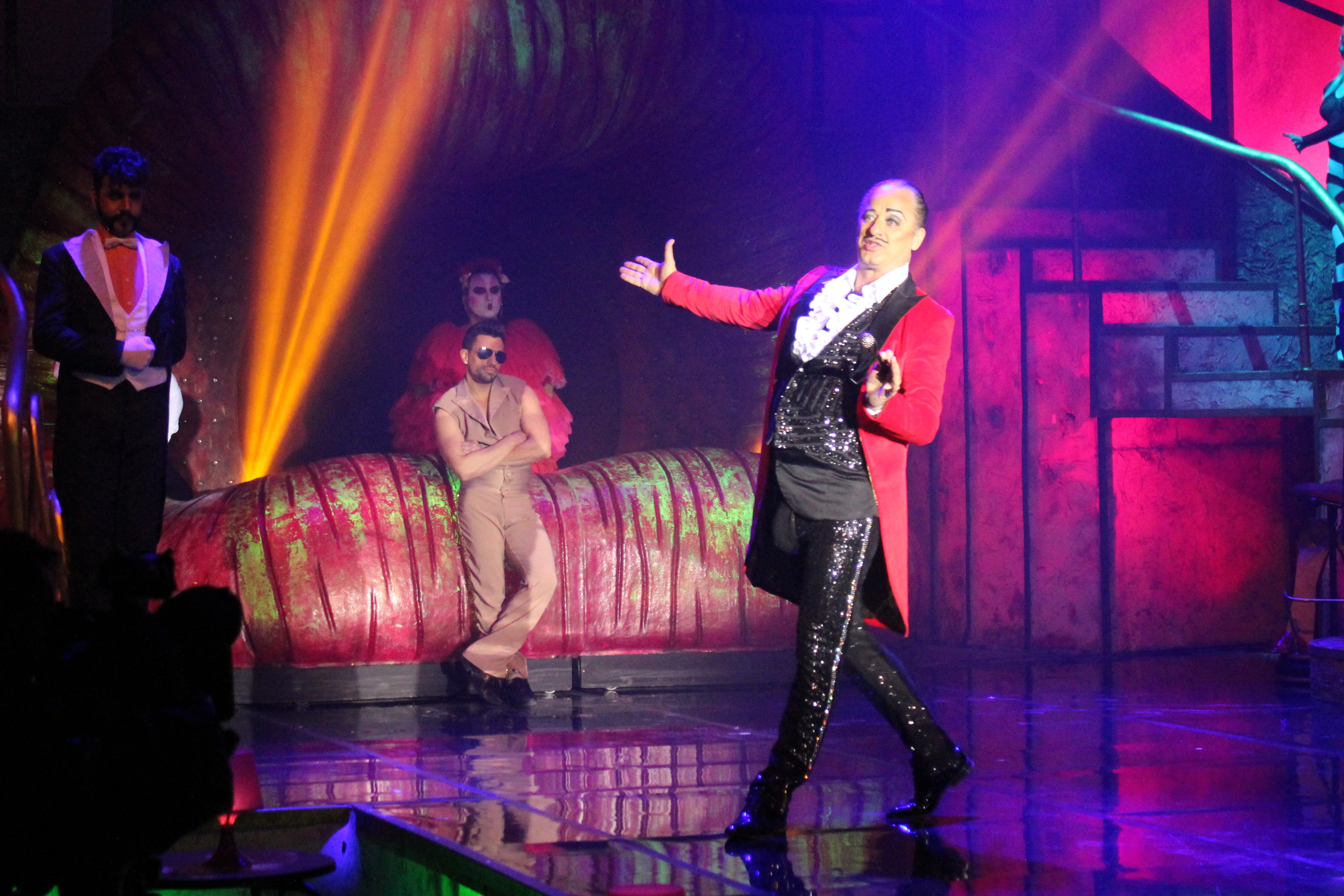 Tom Gerhardt reüssiert in Köln in dieser Rolle, einer Mischung aus Hugh Hefner und Dr. Frank N. Furter, zusammen mit Künstlern und preisgekrönten Spitzenartisten aus aller Welt.
