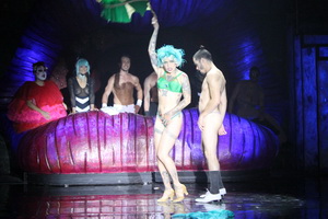 Die ausgeflippten Gäste des MC zeigen was sie zu bieten haben - allen voran der sexgierige "Pony Loco" - Ignacio Sánchez. Er lässt sein "bestes Stück" mächtig wirbeln - auf der Bühne, in der Luft und im Publikum. Der argentinische Inline-Skater mit dem Körper eines Modellathleten beherrscht nicht nur sein Metier auf den Rollen perfekt, er liefert sich zudem einen Striptease-Wettkampf mit der burlesquen "Dame des Hauses" die Vinila von Bismark spielt. Im Schwarzlicht entledigt sie sich vor einem fluoreszierenden Paravant ihrer knappen Kleidungsstücke und verteilt anschließend, vor einem schwarzen Hintergrund, fluoreszierende Flüssigkeit in zweierlei Farben auf ihrem Körper.