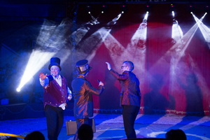 Nachdem „Tik Tak“ die Anweisung des gestrengen „Direktor“ - Sandor Donnert – die Piste zu reinigen mehrfach unterlaufen hat und per Fernbedienung mit der Lichtanlage „gespielt“ hat, nimmt die Show ihren Beginn.