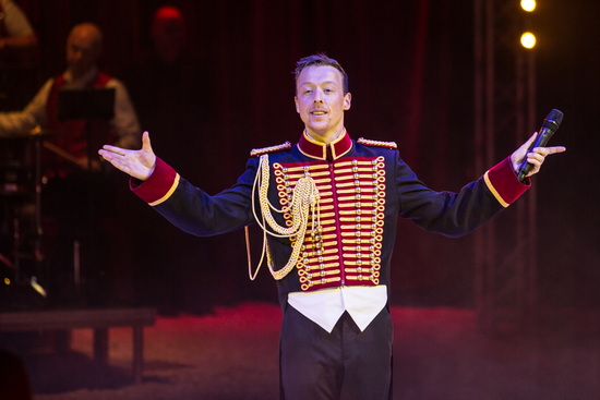 Im Spielzelt stehen ein steiles Schalensitzgradin und Polsterstühle in nostalgisch dekorierten Logen für die zahlreichen Besucher bereit. Der Artisteneingang aus dunkelrotem Samt schließt den hinteren Zeltbereich ab und davor ist ein Podium für das hervorragend aufspielende Orchester, unter der Leitung von Vincent van Lent, platziert.