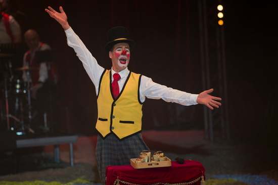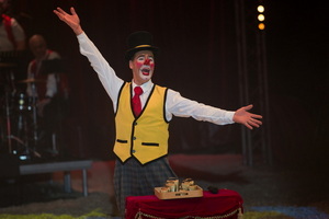 Clown Marco Mariano lockert die Spielfolge mehrfach mit seinen Späßen auf. Vor Beginn der Vorstellung initiiert er einen Applaus-Wettbewerb und stimmt das Publikum auf das Kommende ein. Als Musiker versucht er sich in seiner ersten Szene. Doch das Xylophon fällt, noch ehe der erste Ton erklang, in sich zusammen. Nun soll stattdessen ein Violin-Solo gegeben werden, aber der widerspenstige Notenständer verhindert erneut den Kunstgenuss. Schließlich erklingt auf gestimmten Kuhglöckchen „Sou le Ciel de Paris“.