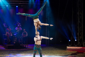 Vor der Pause beweist das Duo Tyshchenko enorme Körperbeherrschung und große Kraft. Die beiden ein wenig martialisch auftretenden Artisten beeindrucken mit exzellenter Hand-auf-Hand Akrobatik. Viele anspruchsvolle Tricks des Genres werden in erstklassiger Manier ausgeführt.