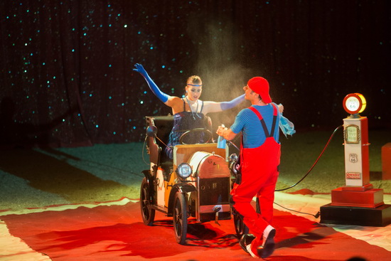 Neu im Repertoire ist das Spiel mit einem widerspenstigen Auto. Diese spezielle Miniausgabe eines Cabrio wird von der Tochter des Clowns gelenkt. Gino Salvini gibt den Mechaniker, der vergeblich versucht, dem Fahrzeug auf die Sprünge zu helfen.