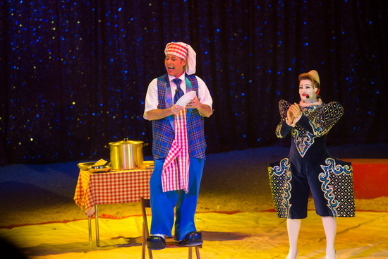 Die Salvini Clowns betreiben ihre Kochschule nun auch in Trier. Es wird mit Tellern und Eiern jongliert und ein Gummihuhn darf natürlich nicht fehlen. Gino Salvini ist darüber hinaus mit seinen Reprisen zu sehen. Er spielt mit Glöckchen, beglückt Logengäste mit Popkorn und führt seinen Kampf gegen eine imaginäre Fliege.