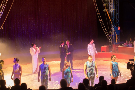 Das Finale bringt noch einmal alle Mitwirkenden in die Manege und das Premierenpublikum spart nicht mit Applaus.