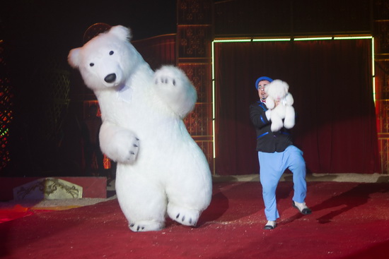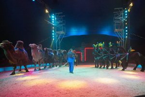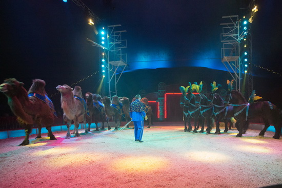 Zwei Tier-Darbietungen waren in der aktuellen Produktion zu erleben. Nino Frank, der Chefdresseur des Circus Bely und regelmässig der Manege des Waiblinger Weihnachtscircus zu Gast, präsentierte je fünf Steppenkamele und Friesenhengste in einem abwechslungsreichen Ablauf.