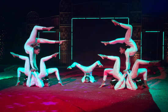 Kontorsionen in Vollendung boten die sieben schwarzafrikanische Girls, die sich als wahre "Dessert Flowers" entpuppen. Umfangreich und variantenreich, voll lässiger Geschmeidigkeit zeigten sie anspruchsvolle Tricks ihres schwierigen Genres.