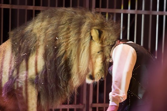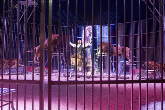 Einen Höhepunkt der Show bildet nach der Pause die Raubtierdressur von Manuel Farina. Vier männliche Löwen und zwei Tiger vereint der versierte und charismatische Dompteur in einem eindrucksvollen Auftritt in der Gitter-Manege. Pyramide, Hochsitzer und verschiedene Sprungvarianten werden souverän absolviert. Besonders der elegante Sprung eines Tigers aus dem Stand über drei andere Tiere hinweg beweist die enorme Sprungkraft der großen Katzen. Darüber hinaus demonstriert der erfahrene Tierlehrer den vertrauensvollen Umgang mit seinen vierbeinigen Manegenpartnern mit oftmaligem direktem Kontakt. Er reitet auf einem Löwen, steckt den Arm ins Löwenmaul und wirft sich auf ein Bett aus den Körpern zweier Mähnenträger. Schließlich umklammert ein Löwe mit den Vorderpranken den Dompteur, so dass dessen Oberkörper völlig in der Mähne verschwindet.