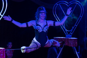 Josephin Weisheit erzählt mit ihrer hervorragend gestalteten Kautschuk-Darbietung eine kleine Geschichte. Mit gutem Balancegefühl werden die zahlreichen Posen eingenommen. Der abwechslungsreiche Auftritt wird souverän absolviert. Zum Höhepunkt setzt sich die charmante Artistin einen Hut mit den Füßen auf ihren Kopf.