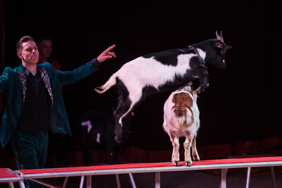 Dominik Weisheit präsentiert die verschiedenen Tier-Darbietungen des Hauses. Zunächst ist er mit zwei Shetland Ponys zu sehen, die mit erstklassigen Steigern gefallen. Drei Ziegen zeigen Balken- sowie Flaschenlauf und beherrschen verschiedene Sprünge. Im zweiten Teil des Programms präsentiert er in einer orientalischen Phantasie, nach Einleitung durch das hauseigene Ballett zwei Kamele in einem harmonischen Ablauf.