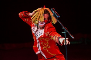 Clown „Dave“ - David Weisheit – lässt per Fernbedienung die Scheinwerfer aufleuchten und mit seiner gestenreichen Untermalung der „Sicherheits-Durchsagen“ nimmt das Opening seinen Verlauf.