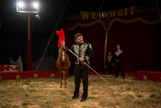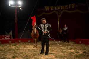 Vor bestens besetzten Rängen gestaltet Clown Banane, alias David Weisheit, das Opening. Die üblichen Durchsagen bezüglich rauchen, filmen und Handygebrauch werden pantomimisch untermalt und per Fernbedienung schaltet der Clown die Manegenbeleuchtung ein.