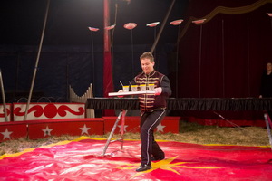 Tim Thomsen führt als versierter und angenehmer Sprechstallmeister durch das Programm und versorgt das Publikum mit allen nötigen Informationen. In erstklassiger Weise versteht er es, die auftretenden Artisten ins rechte Licht zu rücken.