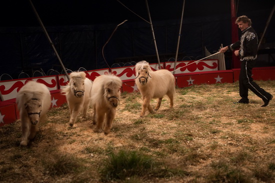 Vier junge falbe amerikanische Mini-Ponys hatten zu Weihnachten ihr Manegendebut und trippeln im zweiten Programmteil ihre Figuren durch den roten Ring. Sie beherrschen bereits eine ansprechende Folge verschiedener Figuren, die in guter Ausführung absolviert werden.