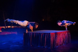 Kevin und David brillieren mit exzellenter Handstandequilibristik, wie man sie in Familienunternehmen in dieser Qualität nur selten sieht. Mit fließenden gekonnten Übergängen verbinden sie die zahlreichen Handstände und Hand-auf-Hand Tricks, die allesamt in erstklassiger Weise ausgeführt werden. Mit Ausstrahlung und großem Kraftaufwand werden viele hochkarätige Tricks des Genres geboten.