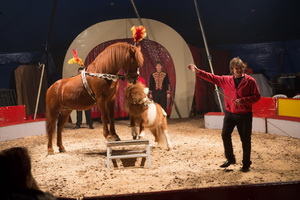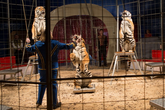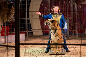 Das unterhaltsame Programm der großen und sehr engagiert auftretenden Circusfamilie beginnt einer besonderen Attraktion für einen Circus dieser Größe. Sascha Prehn präsentiert seine trickstarke Tigerdressur in unmittelbarer Nähe zum Publikum. In dem kleinen Chapiteau sind die Logenbesucher nur rund einen halben Meter vom Gitter entfernt und das Geschehen ist unmittelbar in allen Details erlebbar. Die mächtigen Raubkatzen zeigen geschmeidig ihr umfangreiches Können, zu dem sie souverän angeleitet werden. Viele verschiedene attraktive Sprünge bilden das Herzstück der Darbietung, in der aber auch Pyramide, Bar, Rollover, Hochsitzer und weitere Elemente nicht fehlen. Enge Distanzen in der kleinen Manege und direkter Kontakt mit den Tigern legen ein beredtes Zeugnis vom vertrauensvollen Umgang des Dompteurs mit seinen Tieren ab.