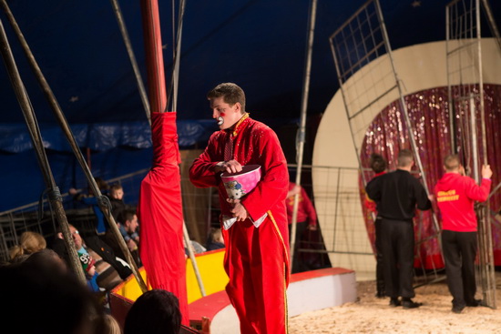Clown „Banane“ überbrückt den Käfigabbau mit der Popcorn-Reprise.