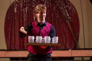 Tim Thomsen führt als versierter und angenehmer Sprechstallmeister durch das Programm des Circus Manuel Weisheit. In angenehmer Weise vermittelt der junge Mann die notwendigen Informationen und versteht es, die auftretenden Artisten ins rechte Licht zu rücken. Zu Beginn des zweiten Programmteils präsentiert er sich darüber hinaus als geschickter Tellerjongleur. Temperamentvoll agiert er im roten Ring, jongliert zunächst mit drei Tellern und schließlich rotieren zehn Teller auf den Stäben, während die Löffel „endlich“ den Weg vom Tablett in die Gläser finden.