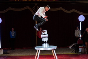 Dimitri und Natalia Kharlov begeistern mit ihrer höchst eleganten Darbietung auf der Rola Rola. Hervorragende Leistungen und ein exzellenter Auftrittsstil heben die Nummer deutlich hervor. Dimitri tritt im eleganten Frack ins Rampenlicht und nachdem er diesen abgelegt hat balanciert er völlig sicher im freien Kopfstand auf dem Rollbrett. Es folgen Handstand und sehr hohe Sprünge über einen eleganten Seidenschal, den der Artist in Händen hält. Der Sprung aus dem Stand auf die Rola, zwei Rolle lagern zwischen drei Ringen gelingt perfekt und auch die Balancen auf mehreren Rollen und Zwischenringen beeindrucken.