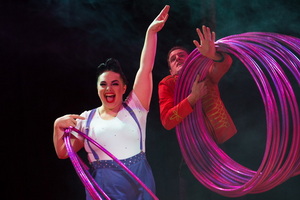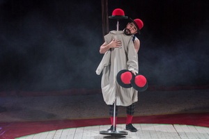 Clownesse La Loka ist mehrfach in der Show zu erleben. Spielfreude, originelle Ideen und komödiantisches Können prägen die Reprisen. Zunächst wird der Applaus des Publikums koordiniert und ein Teil zum Chor geformt, dann schallt „we will rock you“ durchs Zelt. Hula Hoop ist das Thema des zweiten Auftritts. La Loka zeigt sich als geschickte Jongleuse und mit einem riesigen Reifen performt sie in Zeitlupe. Die Filmszene wird sehr dynamisch und flott gebracht. Kurz und knapp werden die Mitspieler instruiert, das oft langwierige „proben“ entfällt. Die Reprise gewinnt durch mehr Improvisation und höheres Tempo sehr an Unterhaltungswert. Im letzten Auftritt präsentiert sich La Loka als hungrige Diva – zwei Mal wird ihr der mitgebrachte Hamburger vor dem Mund konfisziert – die mitreißenden Stepptanz, auch im Handstand präsentiert.