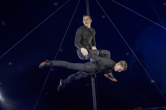 Zunächst sehen wir einen leistungsstarken Auftritt am Chinesischen Mast. In exzellenter Weise erfolgen vielerlei Abläufe des Genres. Partnertricks sind dabei das besondere Salz in der Suppe. Beide Artisten beweisen große Körperkraft und hohes akrobatisches Können.