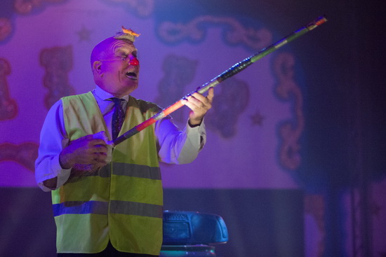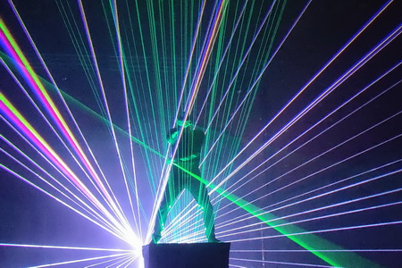 Die mitreißenden Aktionen von „Laserman“ sind vor dem Finale zu erleben. Perfekt werden die bunten Lichtstrahlen im Zusammenspiel mit der Musik manipuliert. Viele begeisterte Ausrufe legen ein beredtes Zeugnis ab, das dieses Element des modernen Circus beim Publikum großen Anklang findet.