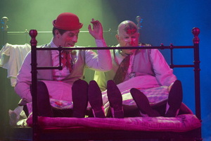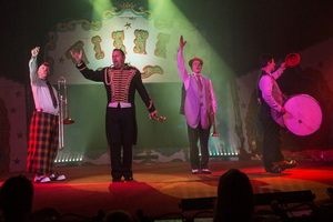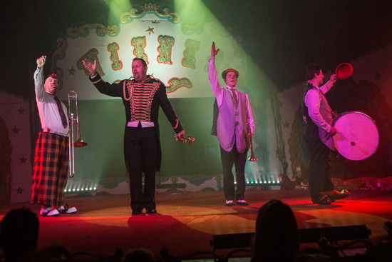 Sein musikalisches Talent stellt Leonardo de Vos unter Beweis indem er live auf dem Xylophon den „Circus Renz Galopp“ erklingen lässt. Natürlich sind die beiden Spaßmacher auch in der Clownsformation „Los Claudios“, gemeinsam mit Lowell Ukmar und Direktor Ricky Cannone – der den seriösen Part übernimmt - zu erleben. In diesem Jahr spielt man das Spukschloss-Entrée. Liebevoll ausgestattet und inszeniert nimmt der bekannte Ablauf seinen Gang. Die Auguste stacheln die Kinder immer wieder zu lautstarkem Mittun an und es herrscht ein enormes Hallo im Zelt. Mit temperamentvollem gemeinsamen musizieren klingt das Entrée harmonisch aus.
