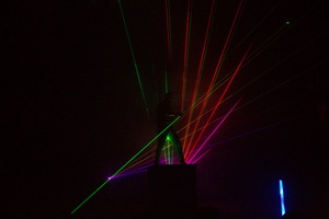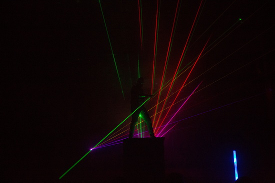 Vor der Pause manipuliert „Laserman“ die bunten Lichtstrahlen im perfekten Zusammenspiel mit der Musik.