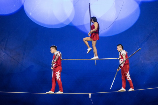 Als Finalnummer sind die beiden Herren und ihre Partnerin auf dem Hochseil zu erleben. Mit dem notwendigen Temperament werden die vielseitigen Tricks in mitreißender Weise ausgeführt. Seil springen, Sprung über den Partner, Rad fahren, Blindlauf und freier Stand auf einem Stuhl erfolgen in erstklassiger Weise und eine Dreier-Pyramide krönt den Auftritt.