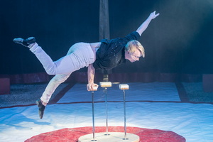 Ebenfalls aus Finnland kommt Handstand-Equilibrist Lauri. Er zeigt sich, obwohl von kräftiger Statur, sehr beweglich und präsentiert eine Vielzahl unterschiedlicher Handstandfiguren in erstklassiger Ausführung. Geschmeidig werden die Aktionen ausgeführt und die Endpositionen sicher erreicht.