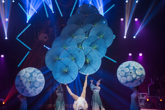 Mit der Antipoden-Darbietung einer Artistin der „Dalian Acrobatic Troupe“ nimmt die Spielfolge ihren Beginn. Chinesische Schirme werden in einem traditionell gestylten Ablauf zu sanften Klängen gekonnt jongliert. Geschickt lässt die Artistin die Requisiten über Hände und Füße wandern und nach hohen Kicks beschreiben die Schirme abenteuerliche Flugkurven und finden stets punktgenau zu einer sicheren Landung zurück. Schließlich werden auf einem Fuß neun und auf dem anderen vier Schirme lose zu einer Raute gestapelt und sicher ausbalanciert.