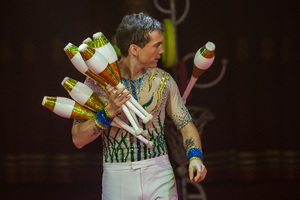 Mit einem höchst selten im Circus zu sehenden Genre ist der japanische Artist Shu Takada zu erleben – er manipuliert Jo-Jos. Leider sind die Requisiten sehr filigran und die meisten Abläufe erschließen sich dem Publikum, aufgrund der Distanzen im Chapiteau, nicht wirklich.