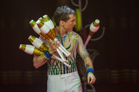 Tempojongleur Dede Larible beginnt seinen fulminanten Auftritt mit vier Keulen und führt die vielseitigen Muster rasant und gekonnt aus. Die nächsten Routinen werden mit bis zu neun Ringen gearbeitet. Im Folgenden fliegen Sombreros durch die Kuppel und zum Höhepunkt seiner Darbietung wechselt der Jongleur noch einmal zu den Keulen, von denen nun bis zu sieben sicher manipuliert werden.