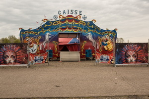 Auf dem Circusplatz im Messegelände in Metz zeigt sich der Circus in großzügiger Formation aufgebaut. Blau, weiß, rot – die französischen Nationalfarben zieren das komplette Material. Die roten Zelte sind mit spiralförmigen blauen Streifen, mit weißen Sternen darin, designt. Das Zwei-Masten Chapiteau wird von einem Metallbogen über der hohen spitzen Kuppel überragt. Sechs mächtige Quaderpools formen die voluminöse Kuppel.