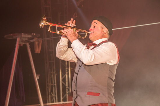 Clown „Pedro“ ist in vier Reprisen zu erleben. Er verkörpert eine sympathische Figur, die beim Publikum ausgezeichnet ankommt. Sein stringentes Spiel führt zielstrebig zur Pointe und verzichtet auf Längen. Zunächst kommen Tischtennisbälle zum Einsatz, die mit Schläger und Mund manipuliert werden. Wenig später zeigt er sich als begabter Tänzer mit einer lebensgroßen Puppe. Magic ist das Thema der dritten Reprise und nachdem sich zunächst Verblüffung breit gemacht hat, erweist sich die Zauberei denn doch als nicht so ganz problemfrei. Zu guter Letzt dirigiert der Clown mit Hilfe seiner Trompete den Applaus und befeuert mit seinem gekonnten und temperamentvollen Spiel die Stimmung im Rund.