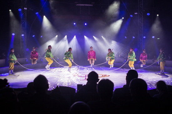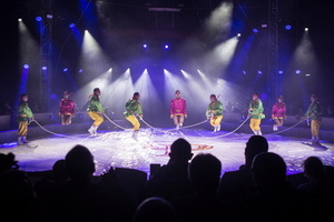 Komplettiert wird die umfangreiche Spielfolge mit drei Darbietungen der mongolischen Puje Truppe. Zunächst brilliert die gesamte Truppe mit Seil springen. In vielseitigen Formationen werden die wirbelnden Taue überquert. Mittels Saltos, zu viert im Liegestütz übereinander, im 3-Mann-Hoch und in vielen weiteren Varianten werden rhythmisch geschwungenen Hindernisse überwunden und eine der Artistinnen dient gar als „lebendes Sprungseil“.