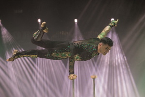 Groß in Szene gesetzt, mit Licht und Ballett, wurde die Handstandequilibristik von Pucci. Nachdem die ersten Handstandfiguren auf Stäben erfolgten, wechselt die Szene und der Artist arbeitet sich auf einer Stuhlpyramide in die Höhe. Schließlich bilden sechs Stühle einen labilen Turm auf dem die longengesicherten Handstände erfolgen.
