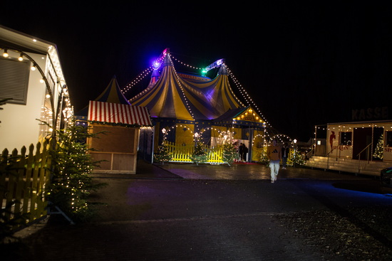Ein großer, bis in die Kuppel reichender und liebevoll geschmückter Weihnachtsbaum empfängt im ersten Zelt die Besucher. Die Circusrestauration in liebevoll dekorierten Buden, roter Teppich, ein Circus-Café in einem hervorragend restaurierten Oberlichtwagen,stimmungsvolles Licht und angenehme Musik – sind die Elemente, die eine festliche Atmosphäre schaffen und Aufenthaltsqualität vermitteln.