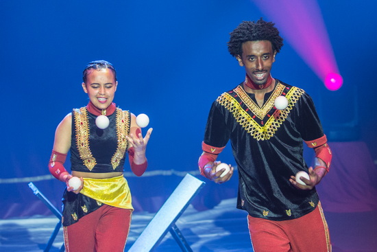 Das Duo „Bouncing Balls“ präsentiert – welch Überraschung bei dem Namen – Bouncing Jonglagen. In spielerischer Weise manipulieren die bei jungen Artisten vielfältige Varianten ihrer Balljonglage. Besonderen Drive erhält dieser Auftritt durch die zahlreichen, in den Ablauf der Routinen integrierten akrobatischen Tricks.
