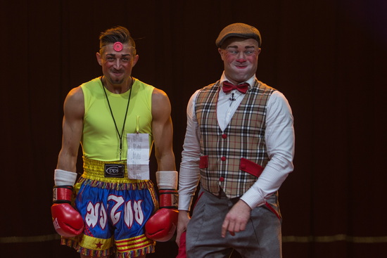 Es ist stets eine besondere Freude Clown Antonio – Antonio Casselly – bei seinem facettenreichen und pointierten Spiel zusehen zu dürfen. Er verkörpert eine sympathische Figur die sofort Zugang zum Publikum findet und seine Reprisen wirken spontan und nicht „gespielt“. Zunächst „unterstützt“ er seinen Bruder bei einer Ansage, indem er jongliert und dabei „sieben Bälle in der Luft“ präsentiert sowie seinen Hai „Heidi“ vorstellt. Ein Klassiker im Repertoire der Brüder ist der „Boxautomat“. Alfons spielt die Automaten-Puppe, die natürlich ein unerwartetes Eigenleben entwickelt und Antonio gibt den heillos überforderten Probanden, der mit Hilfe des Automaten boxen lernen möchte.