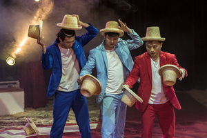 Noch einmal wird jongliert in dieser Show – gemeinsam präsentieren die drei Herren eine Hutjonglage. Solo- und Gruppentricks wechseln in schneller Folge. In immer wieder neuen Formationen wechseln die Strohhüte von einem zum anderen Akteur und schließlich segeln Sombreros Kometen gleich durch den Raum.