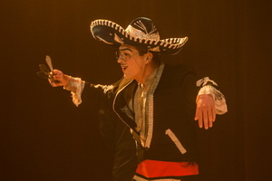 Wenig später erobert er, als Mexikaner der etwas zu viel Tequilla genossen hat, vom Haupteingang her die Manege, um sein Können als Messerwerfer zu beweisen. Da sich kein Kollege bereitfindet den Platz am Messerbrett einzunehmen, verpflichtet er kurzerhand einen Logengast für diese ehrenvolle Aufgabe.