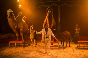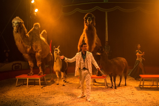Vor bestens gefüllten Rängen startet die Spielfolge mit der Freiheitsdressur von fünf weißen Araberhengsten. Nach einander kommen die Pferde in die in mystisches blaues Licht getauchte Manege. Sie bewegen sich frei und ungezwungen umher, dann greift Direktor Rudolf Renz ruhig und versiert mit ordnender Hand ein und lässt die verschiedenen Formationen souverän ablaufen. Wenig später präsentiert der Chef des Hauses ein munteres Groß-und-Klein, wobei er von seiner sechsjährigen Tochter Jayda Aline bereits tatkräftig unterstützt wird. Eine weitere Dressur-Darbietung folgt im zweiten Programmteil. Zwei mächtige Steppenkamele bieten im Zusammenspiel mit zwei Alpakas eine variantenreiche Laufarbeit.