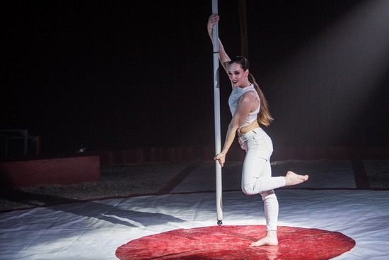 Die finale Darbietung sieht Júlia Szegedi am Flying Pole. Elegante Flüge füllen die Kuppel und in höchst kraftvoller Manier werden die zahlreichen Tricks ausgeführt. Immer wieder macht sich auf den Rängen Erstaunen breit, wie es der Artistin gelingt sich mit wenig Kontakt an der Stange zu halten und ihren Körper auch in extreme Positionen zu bringen.